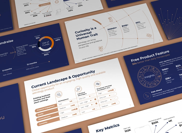 With more than 200 successful startup pitch decks in the bag, we are among the top powerpoint presentation companies in India. We create investor pitch decks with eye-catching designs that will appeal to a global clientele. We understand that nothing but a compelling investor pitch deck can help your business idea stand out from the crowd.